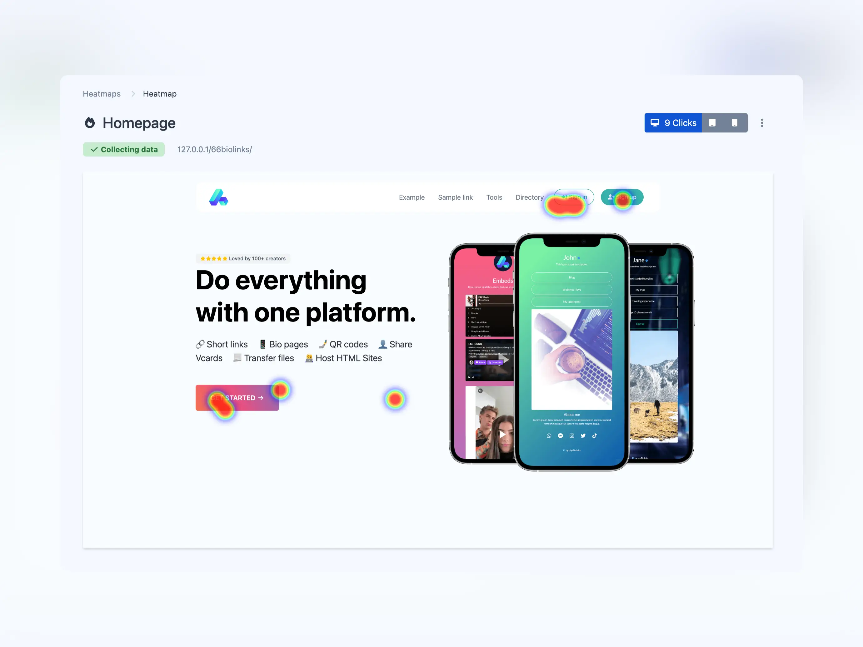 收集匿名点击数据并生成易于理解的热图。